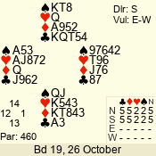 Con | Dc | Res | Score | Ld | Pairs | Rd | Tbl | 3 NT | N | +2 | 460 | K | 07 - 08 | 10 | 7 |