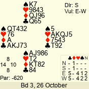 3 NT | W | +1 | -430 | T | 10 - 08 | 3 | 10 |
