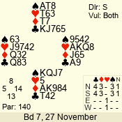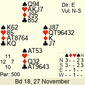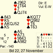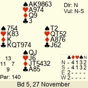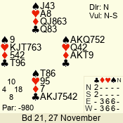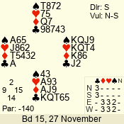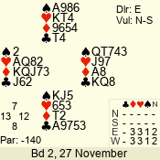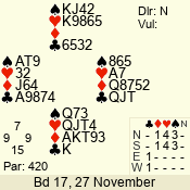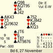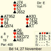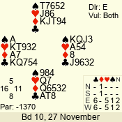 3 NT | E | +1 | -430 | 5 | 06 - 11 | 8 | 6 |