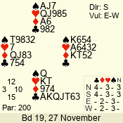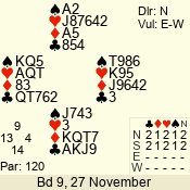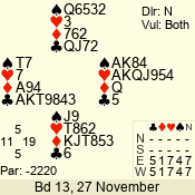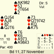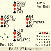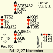 Con | Dc | Res | Score | Ld | Pairs | Rd | Tbl | 3 NT | N | +4 | 520 | 4 | 11 - 01 | 11 | 11 |