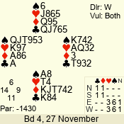 3 NT | W | +1 | -630 | A | 12 - 11 | 2 | 12 |