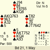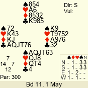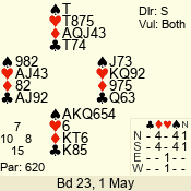 Con | Dc | Res | Score | Ld | Pairs | Rd | Tbl | 3 NT | S | +1 | 630 | 6 | 05 - 08 | 6 | 5 |