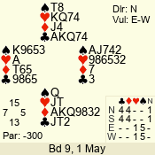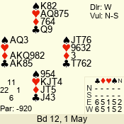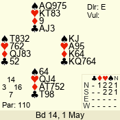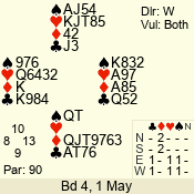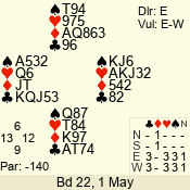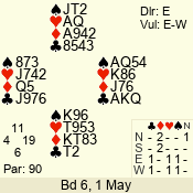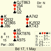 Con | Dc | Res | Score | Ld | Pairs | Rd | Tbl | 5 x | E | -4 | 1100 | A | 06 - 04 | 3 | 6 |