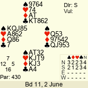 Con | Dc | Res | Score | Ld | Pairs | Rd | Tbl | Sec | 6  | S | = | 1430 | K | 11 - 04 | 1 | 3 | b |