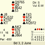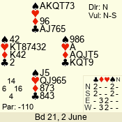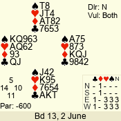 3 NT | S | +1 | 630 | K | 05 - 04 | 2 | 5 | w |