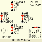 3 NT | W | +2 | -460 | 7 | 04 - 10 | 7 | 2 | b |