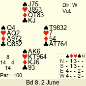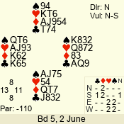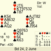 3 NT | W | +1 | -430 | 5 | 06 - 04 | 3 | 6 | w |
