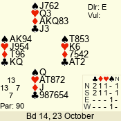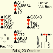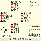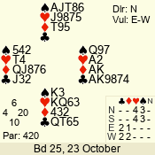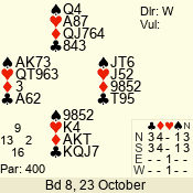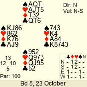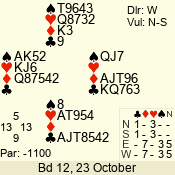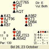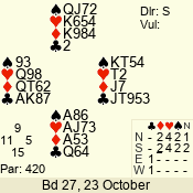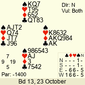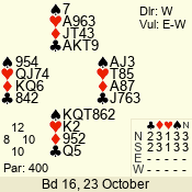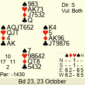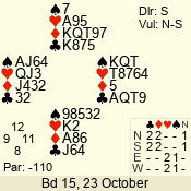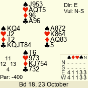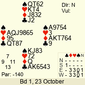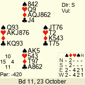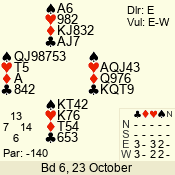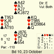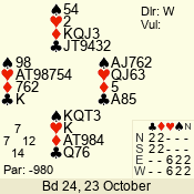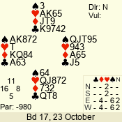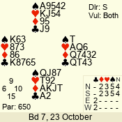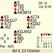 3 NT | E | +1 | -430 | 6 | 05 - 09 | 6 | 5 |