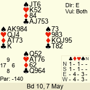 Con | Dc | Res | Score | Ld | Pairs | Rd | Tbl | 3 N | S | +1 | 430 | 2 | 10 - 06 | 5 | 10 |