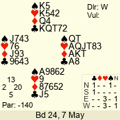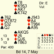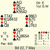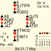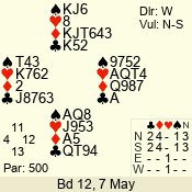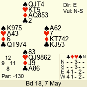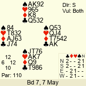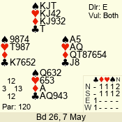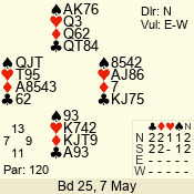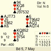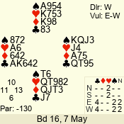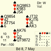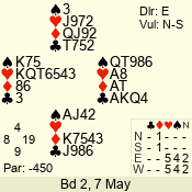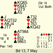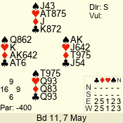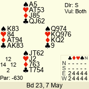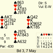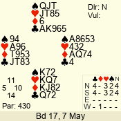 Con | Dc | Res | Score | Ld | Pairs | Rd | Tbl | 3 N | N | +1 | 430 | 6 | 01 - 09 | 13 | 1 |
