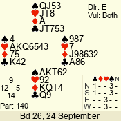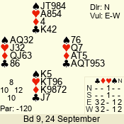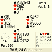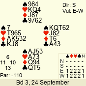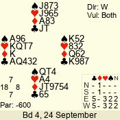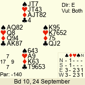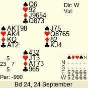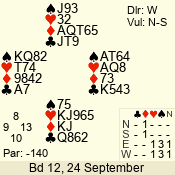 | 3 NT | S | +3 | 490 | 5 | 04 - 06 | 10 | 4 |