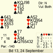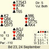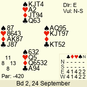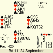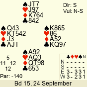 | 3 NT | S | +2 | 460 | 3 | 01 - 11 | 13 | 1 |