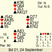 | 3 NT | N | +1 | 430 | J | 11 - 06 | 6 | 11 |