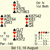 Con | Dc | Res | Score | Ld | Pairs | Rd | Tbl | 1  | N | +2 | 140 | 3 | 08 - 02 | 7 | 8 |