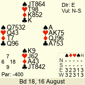 Con | Dc | Res | Score | Ld | Pairs | Rd | Tbl | 3 NT | E | -2 | 100 | A | 05 - 05 | 1 | 5 |