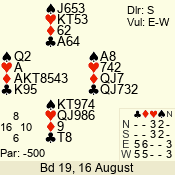 Con | Dc | Res | Score | Ld | Pairs | Rd | Tbl | 4  | E | -5 | 500 | T | 06 - 03 | 4 | 6 |