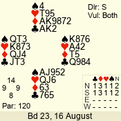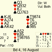 Con | Dc | Res | Score | Ld | Pairs | Rd | Tbl | 4  | S | +2 | 480 | J | 08 - 05 | 4 | 8 |