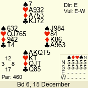 Con | Dc | Res | Score | Ld | Pairs | Rd | Tbl | 3 NT | N | +2 | 460 | 3 | 06 - 08 | 9 | 6 |