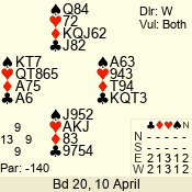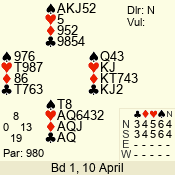 | 3 NT | S | +1 | 430 | 8 | 05 - 02 | 4 | 5 |