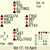 | 3 NT | E | +2 | -460 | 7 | 07 - 02 | 6 | 7 |