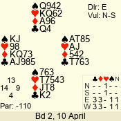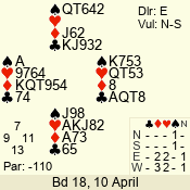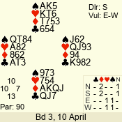 | 3 NT | S | +2 | 460 | 2 | 03 - 03 | 1 | 3 |