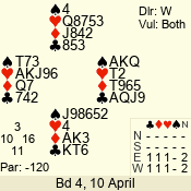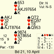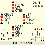 | 3 NT | S | +1 | 430 | 9 | 04 - 05 | 7 | 4 |
