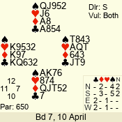 | 3 NT | S | +4 | 520 | 8 | 07 - 04 | 4 | 7 |