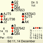 Con | Dc | Res | Score | Ld | Pairs | Rd | Tbl | 1 NT x | W | -3 | 500 | Q | 03 - 06 | 4 | 3 |