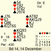 Con | Dc | Res | Score | Ld | Pairs | Rd | Tbl | 3 NT | E | -3 | 300 | 4 | 03 - 06 | 4 | 3 |
