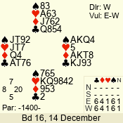 Con | Dc | Res | Score | Ld | Pairs | Rd | Tbl | 3 NT | E | -4 | 200 | 6 | 01 - 06 | 2 | 1 |