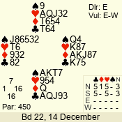 Con | Dc | Res | Score | Ld | Pairs | Rd | Tbl | 5  | S | = | 450 | K | 06 - 06 | 1 | 6 |