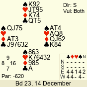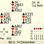 Con | Dc | Res | Score | Ld | Pairs | Rd | Tbl | 3  | S | -4 | -200 | A | 06 - 04 | 3 | 6 |