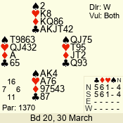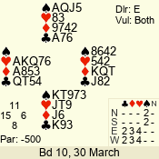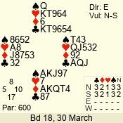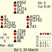 Con | Dc | Res | Score | Ld | Pairs | Rd | Tbl | 3 N | S | = | 600 | 8 | 10 - 10 | 11 | 10 |