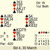 Con | Dc | Res | Score | Ld | Pairs | Rd | Tbl | 4  | S | = | 620 | Q | 04 - 07 | 8 | 4 |