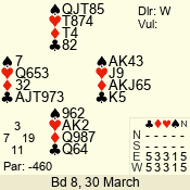 Con | Dc | Res | Score | Ld | Pairs | Rd | Tbl | 3 N | S | +2 | 460 | T | 05 - 05 | 11 | 5 |