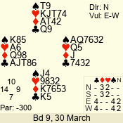 Con | Dc | Res | Score | Ld | Pairs | Rd | Tbl | 4  | E | -3 | 300 | 4 | 01 - 04 | 8 | 1 |