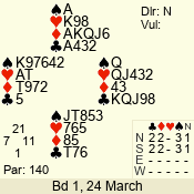 3 NT | S | +1 | 630 | 5 | 02 - 03 | 13 | 2 |