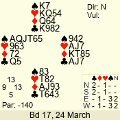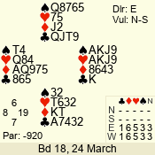 3 NT | E | +1 | -630 | T | 08 - 13 | 9 | 8 |