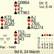Con | Dc | Res | Score | Ld | Pairs | Rd | Tbl | 6  | S | = | 1430 | | 04 - 07 | 11 | 4 |