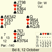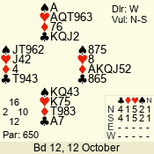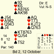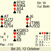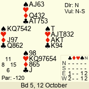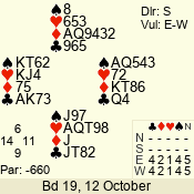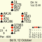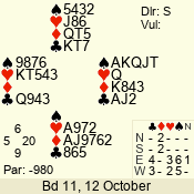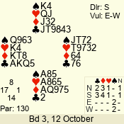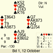 3 NT | E | +1 | -430 | J | 12 - 09 | 19 | 12 |