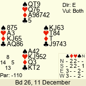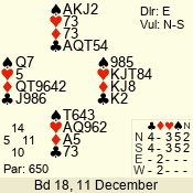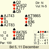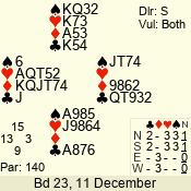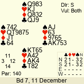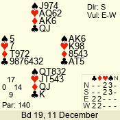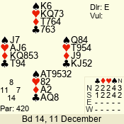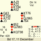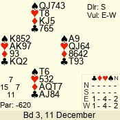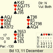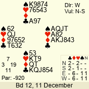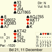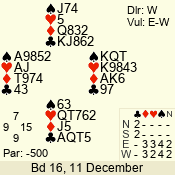 Con | Dc | Res | Score | Ld | Pairs | Rd | Tbl | 3 NT | N | +4 | 520 | 6 | 13 - 14 | 14 | 13 |