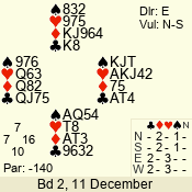 3 NT | S | -4 | -200 | Q | 11 - 11 | 1 | 11 |
