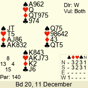 Con | Dc | Res | Score | Ld | Pairs | Rd | Tbl | 1 NT | W | -3 | 150 | T | 03 - 06 | 12 | 3 |