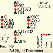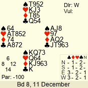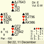 Con | Dc | Res | Score | Ld | Pairs | Rd | Tbl | 2 NT | W | -3 | 150 | 6 | 13 - 12 | 2 | 13 |
