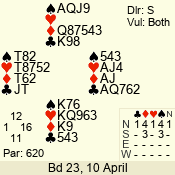 3 NT | E | +2 | -460 | 6 | 10 - 09 | 2 | 10 |