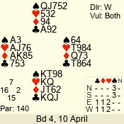 Con | Dc | Res | Score | Ld | Pairs | Rd | Tbl | 4  | W | = | -420 | 3 | 03 - 06 | 9 | 3 |