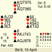 Con | Dc | Res | Score | Ld | Pairs | Rd | Tbl | 3 NT | S | +1 | 430 | T | 06 - 09 | 9 | 6 |