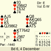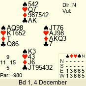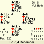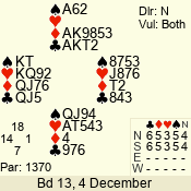 Con | Dc | Res | Score | Ld | Pairs | Rd | Tbl | 3 N | S | +1 | 430 | 7 | 01 - 02 | 3 | 1 |