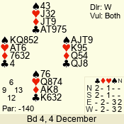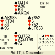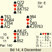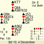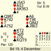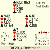 Con | Dc | Res | Score | Ld | Pairs | Rd | Tbl | 4  | S | = | 420 | 3 | 02 - 03 | 3 | 2 |