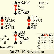 Con | Dc | Res | Score | Ld | Pairs | Rd | Tbl | 4  | S | = | 420 | K | 03 - 07 | 4 | 3 |